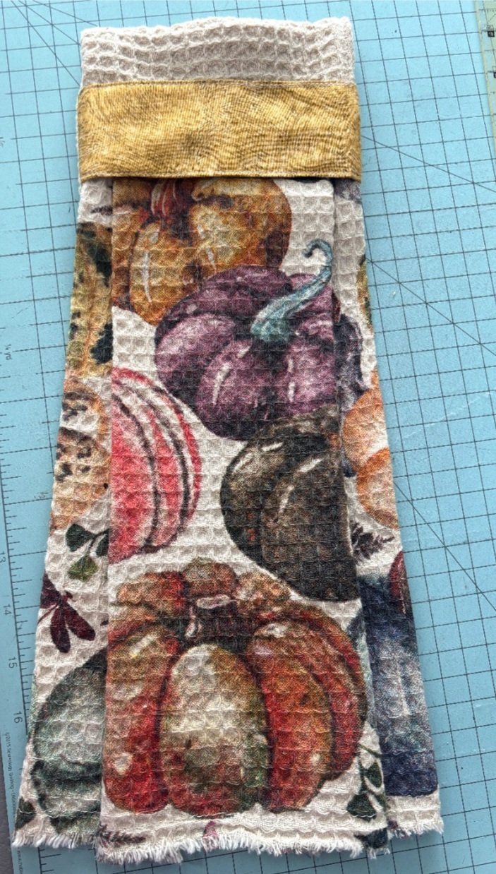 Spruce up your decor and make a towel that will actually stay on the oven handle! These make great housewarming or holiday gifts, or make for yourself for a little kitchen glam-up!
